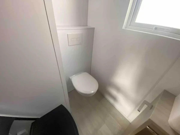 Incluye aislamiento térmico y acústico, ventanas de doble acristalamiento, conexiones de agua, electricidad y gas listas para usar, y sistemas de calefacción y agua caliente eficientes. La casa móvil T3 Titiana es ideal tanto para residencia permanente como para uso vacacional.