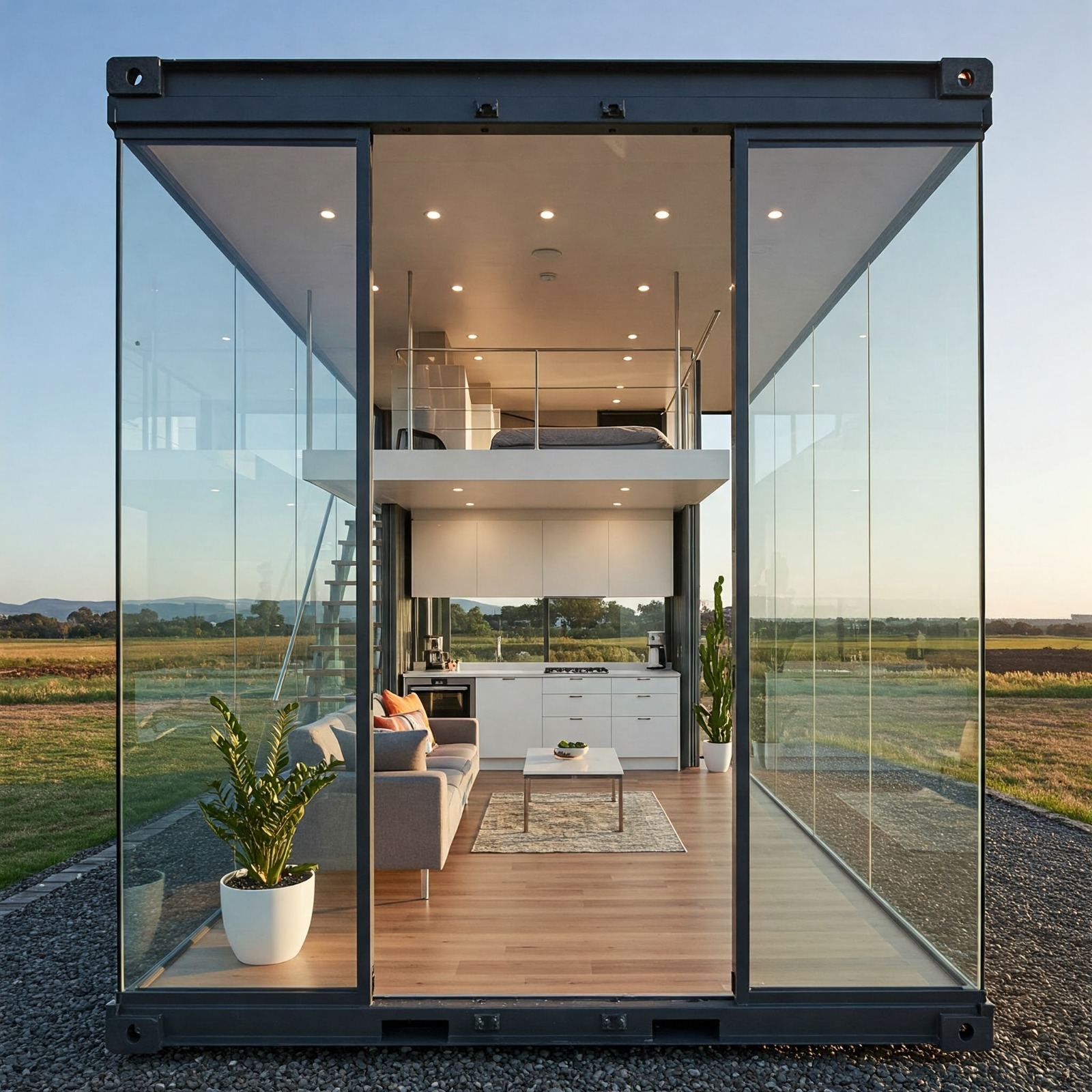 Casa Cristal Con Contenedor De 40 Pies