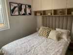 El dormitorio principal ofrece un refugio íntimo con cama matrimonial y amplio armario, mientras que el dormitorio secundario brinda espacio para niños, invitados o uso flexible. El baño, acabado en elegante imitación mármol, aporta frescura y confort.