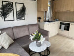 En el salón encontrarás un cómodo sofá convertible frente a la chimenea eléctrica LED, con salida directa a la terraza para disfrutar de cada estación. La cocina, moderna y equipada con todo lo necesario, conecta de manera práctica con el comedor, creando un ambiente perfecto para compartir.