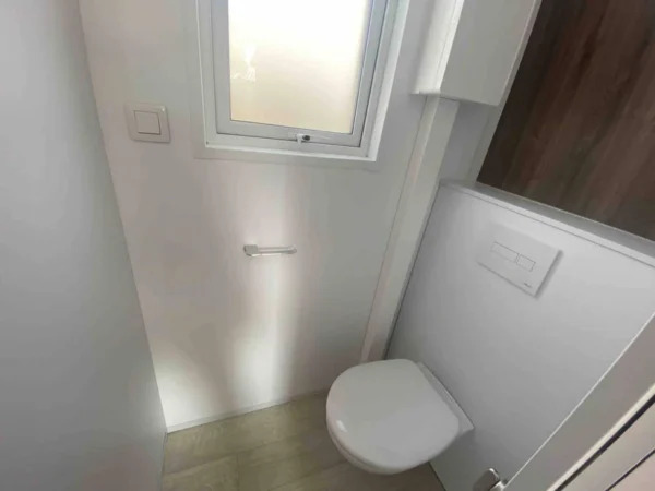 Incluye aislamiento térmico y acústico, ventanas de doble acristalamiento, conexiones de agua, electricidad y gas listas para usar, y sistemas de calefacción y agua caliente eficientes. La casa móvil T3 Titiana es ideal tanto para residencia permanente como para uso vacacional.