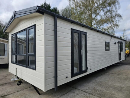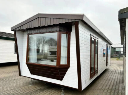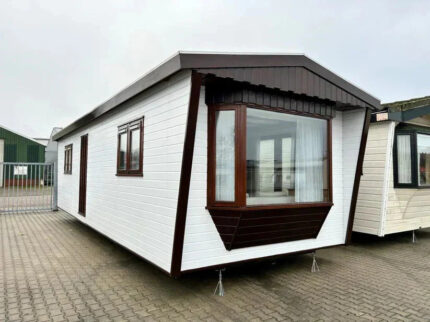 Combina elegancia y funcionalidad en sus 8,3 × 4,3 m. Dispone de 2 dormitorios, 2 baños con ducha, y acabados en PVC efecto madera que aportan un estilo natural. Su aislamiento 4 estaciones ofrece confort en cualquier clima, mientras que el equipamiento —calefacción eléctrica, lavavajillas, encimera y calentador de gas— garantiza comodidad moderna. Sus puntos fuertes: una ducha grande y la ventaja de tener dos baños completos.