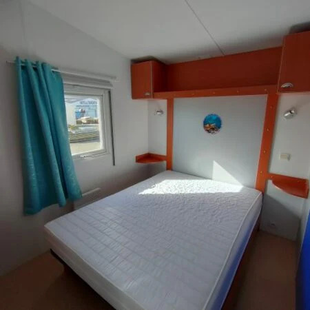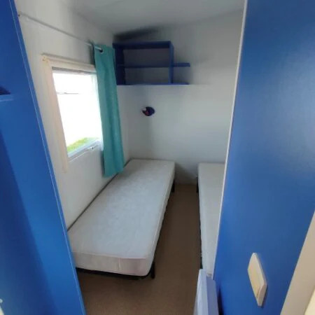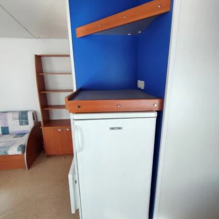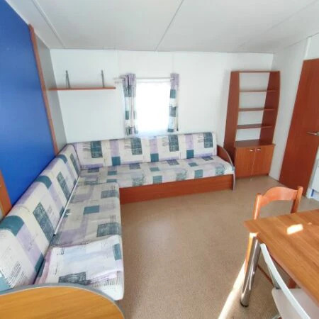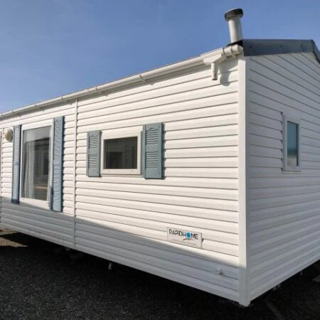 Esta casa móvil de 8,3 x 4 m combina funcionalidad y confort en un diseño práctico. Dispone de 2 habitaciones, un baño, un salón acogedor, cocina totalmente equipada y un W.C. independiente.