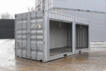 Construido a partir de un contenedor ISO de 20 pies, es hermético al viento y al agua y cuenta con una nueva capa de pintura. Su estructura está fabricada en acero CORTEN resistente a la corrosión, con puertas enrollables de acero corrugado de calibre 26 y revestimiento de poliéster para mayor durabilidad. Cada puerta incluye una cerradura magnética de acero galvanizado para garantizar la seguridad.