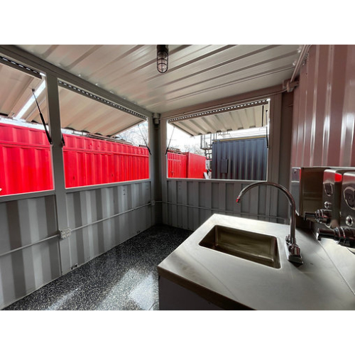 Este contenedor ofrece una solución compacta y funcional para operar un negocio gastronómico móvil o estacionario.